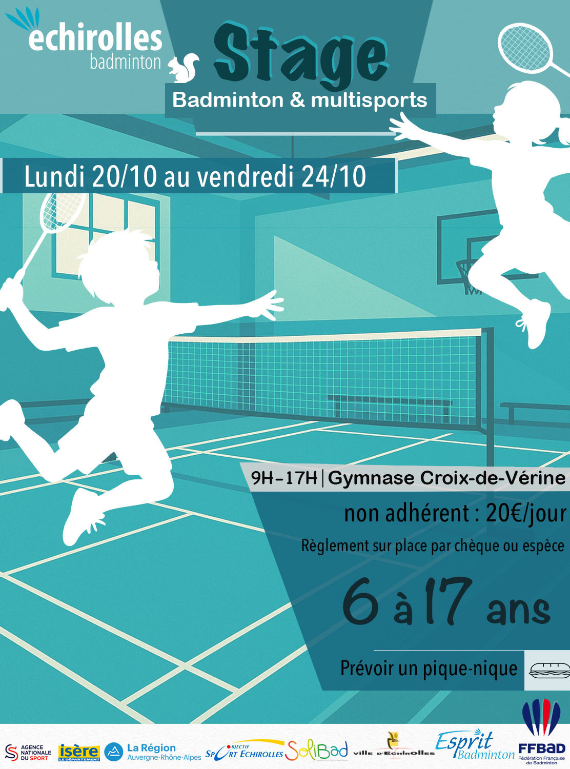Le club d'Échirolles Badminton organise un stage jeunes (6-17 ans), Badminton et multisports.